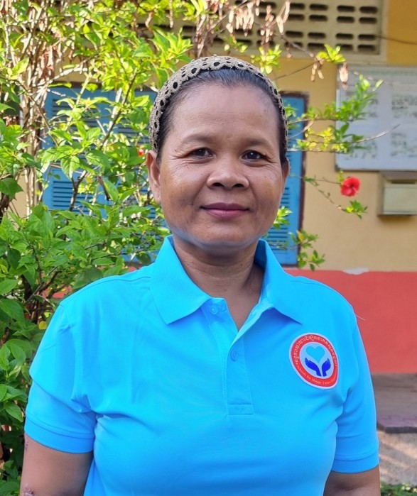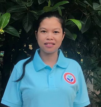 Hello! I am Thy and I am 45 years old. I am a caregiver to Sreynit, a handicap lady. I am from Battambang province. I support Sreynit every day and taking care of her. I play with here, show her pictures, teaching her by show and play game, support her to do exercises and so on. Moreover I also support small kids to learn and help in the kitchen sometime. I love to be here. I am staying and having food in JHS. Thank you!